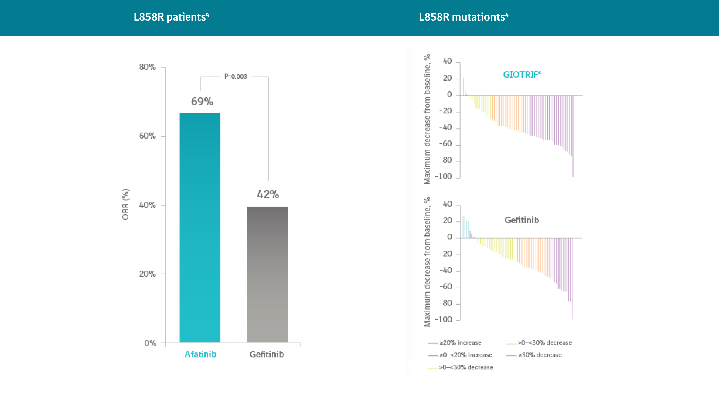 GIOTRIF® demonstrates deeper tumour shrinkage vs gefitinib in L858R patients4